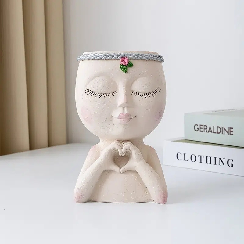 Home > 1pc Figure Flower Pot; Women Face Statue Vase Planter Ornaments; For Indoor Outdoor Home Decor Garden Patio (4.7*7.3*3.4in)