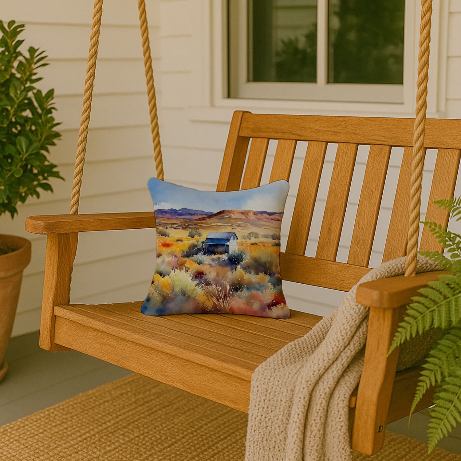 Throw Pillow featuring breed specific Nevada Sagebrush artwork. Add a touch of vibrancy and comfort to your outdoor seating with Caroline's Treasures Fabric Decorative Pillow. Measuring approximately 14 inches by 14 inches, this outdoor pillow is crafted to elevate the appeal of your patio furniture, infusing it with vivid color and artistic flair. The pillow includes a 100% Polyester Fabric sham filled with a quality pillow form to provide superior comfort. Innovatively made from our brand new material, specifically woven for its water resistance, this pillow is designed for durability. The soft canvas fabric offers versatility in use, fit for your indoor couch or your outdoor patio, porch, or veranda. The fabric is dyed with colorfast dyes built for resilience against weather conditions, ensuring the pillow retains its beauty over time. Constructed by sewing three fabric pieces to create a sham, the polyester insert is then nestled inside to form the pillow, resulting in an overstuffed pillow that maintains its shape. Both the sham and the pillow insert are proudly made in the United States. As the pillows are handcrafted, there may be minor variations in size, further enhancing their unique charm. Experience comfort in style with Caroline's Treasures Fabric Decorative Pillow.