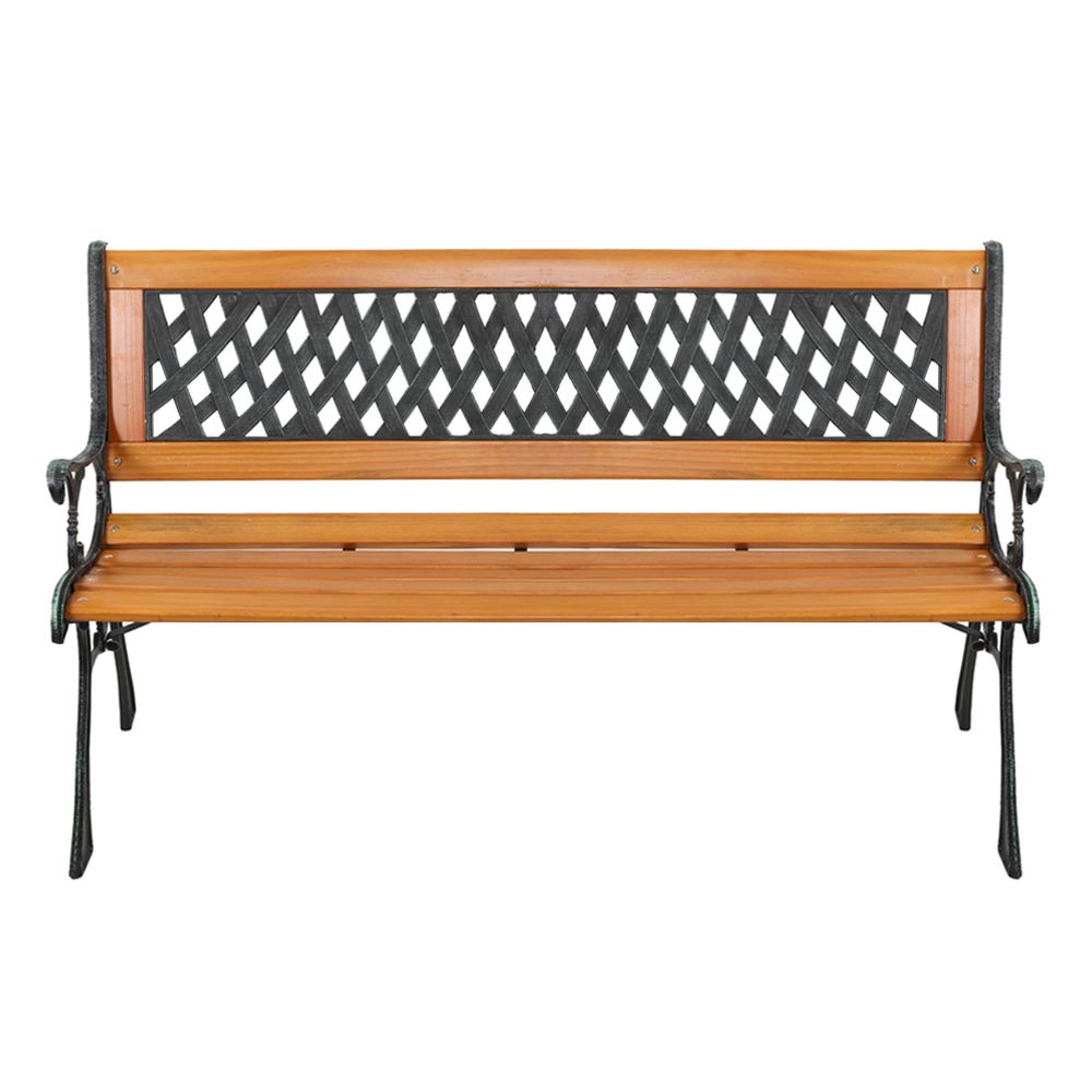 49" Garden Bench Patio Porch Chair Deck Hardwood Cast Iron Love Seat Weave Style Back