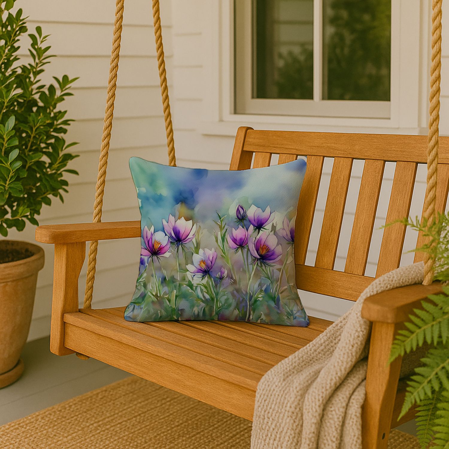 Home > South Dakota Pasque Flowers in Watercolor Throw Pillow Machine Washable, Indoor Outdoor Decorative Pillow for Couch, Bed or Patio, 18Hx18W