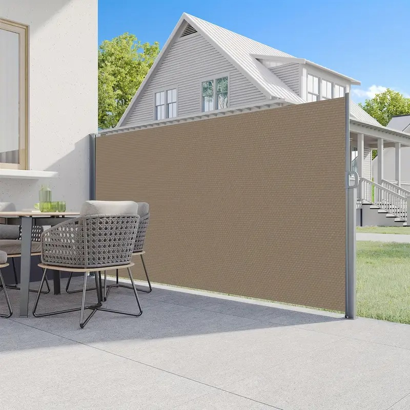 The smooth retractable mechanism allows you to extend or retract the screen effortlessly when needed, while the rustproof and powder-coated steel frame ensures long-lasting durability and weather resistance. Perfect for blocking wind on breezy days or shielding from intense sunlight, this awning enhances your outdoor comfort and privacy.