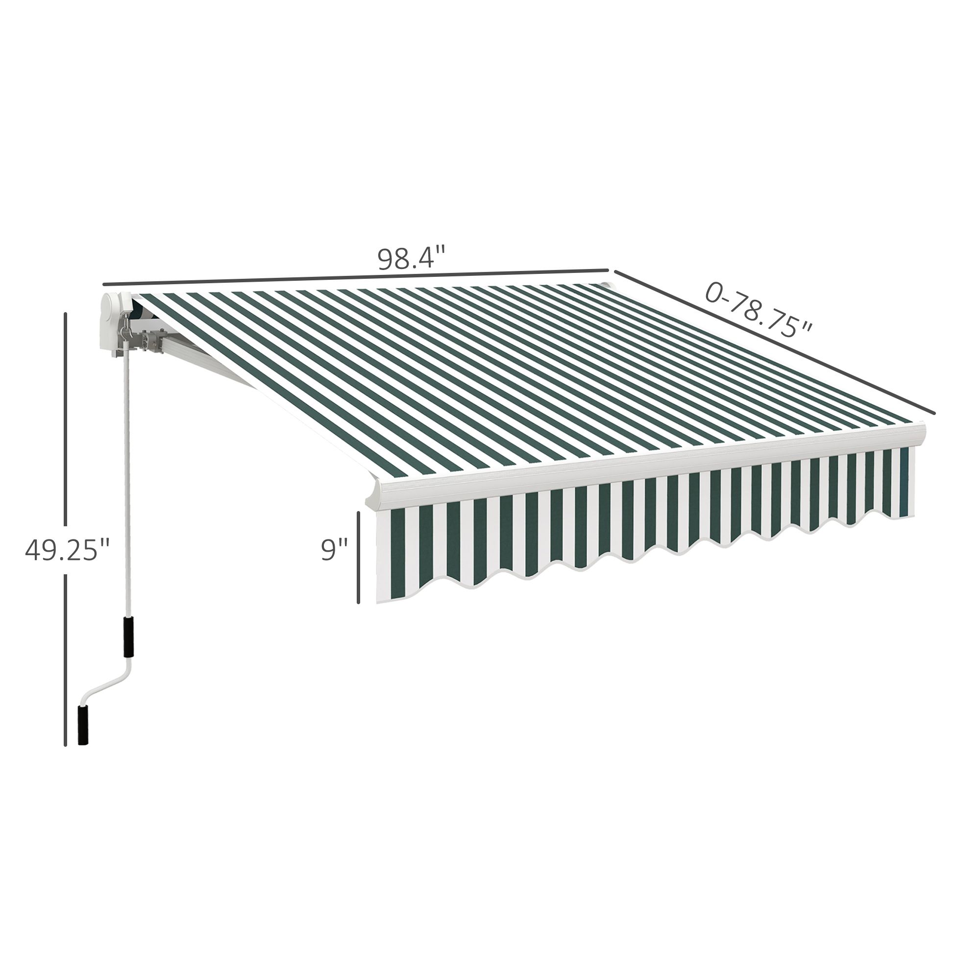 Outsunny 8' x 6.6' Patio Retractable Awning, Manual Exterior Sun Shade Deck Window Cover, Green / White