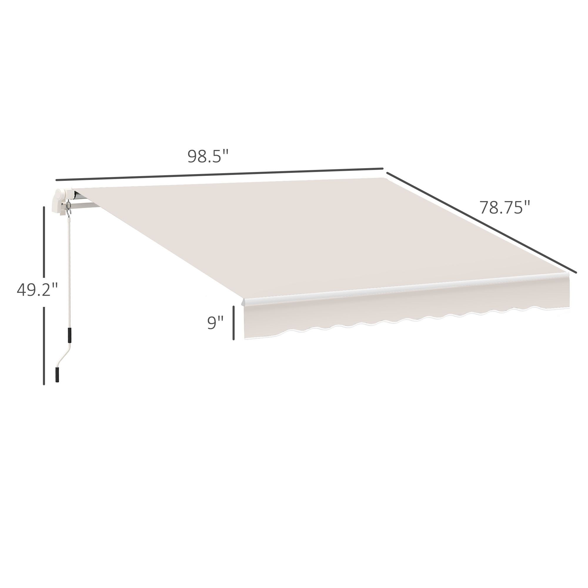 Outsunny 8' x 7' Patio Retractable Awning, Manual Exterior Sun Shade Deck Window Cover, Beige