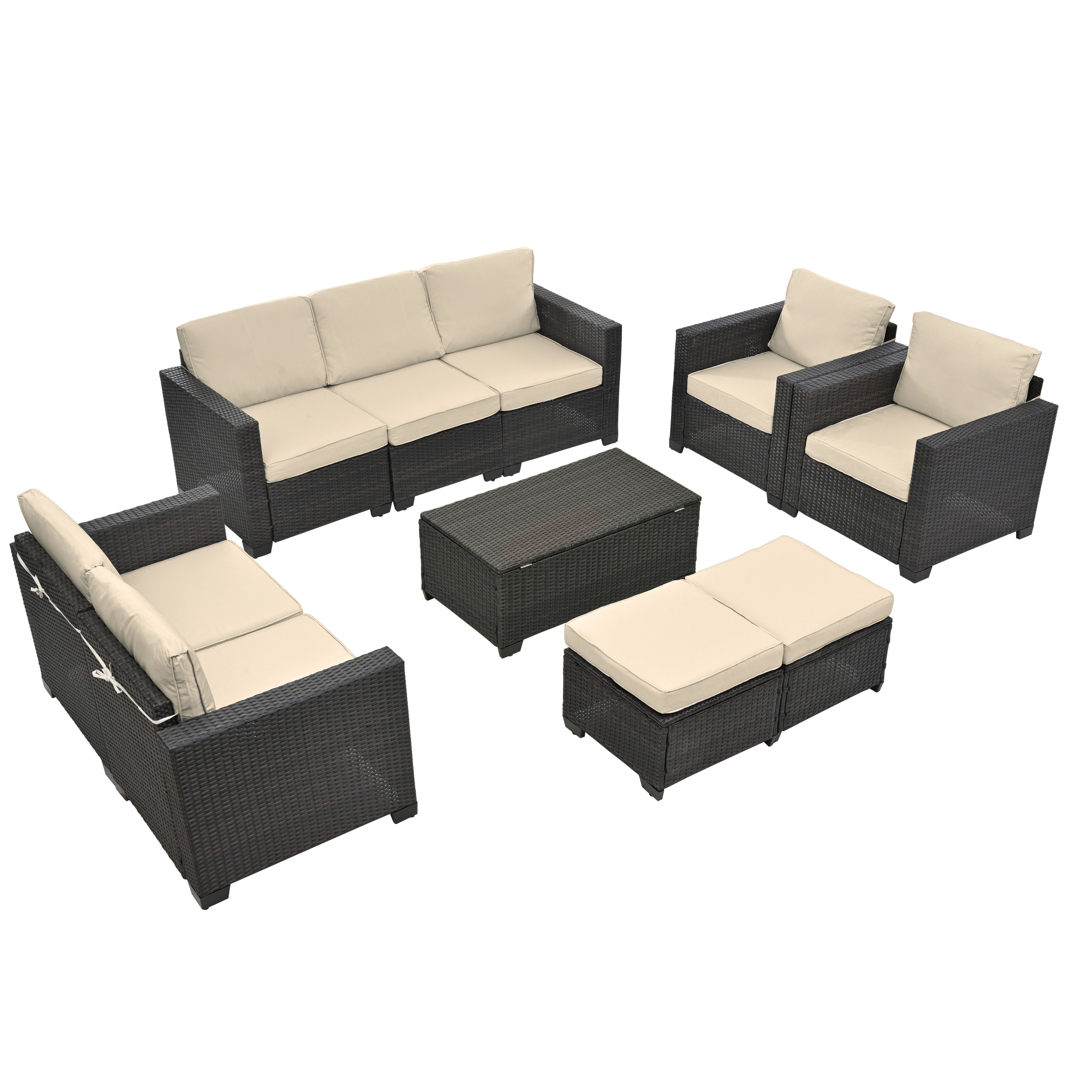 [Sturdy and Durable Materials]The 10 piece patio furniture set is made from high quality PE rattan, which not only enhances the overall flexibility of the furniture, but also greatly enhances its resistance to fading. The frame is made from heavy-duty metal, rust-resistant processing before the powder coating, all these ensures this outdoor furniture set stable and durable