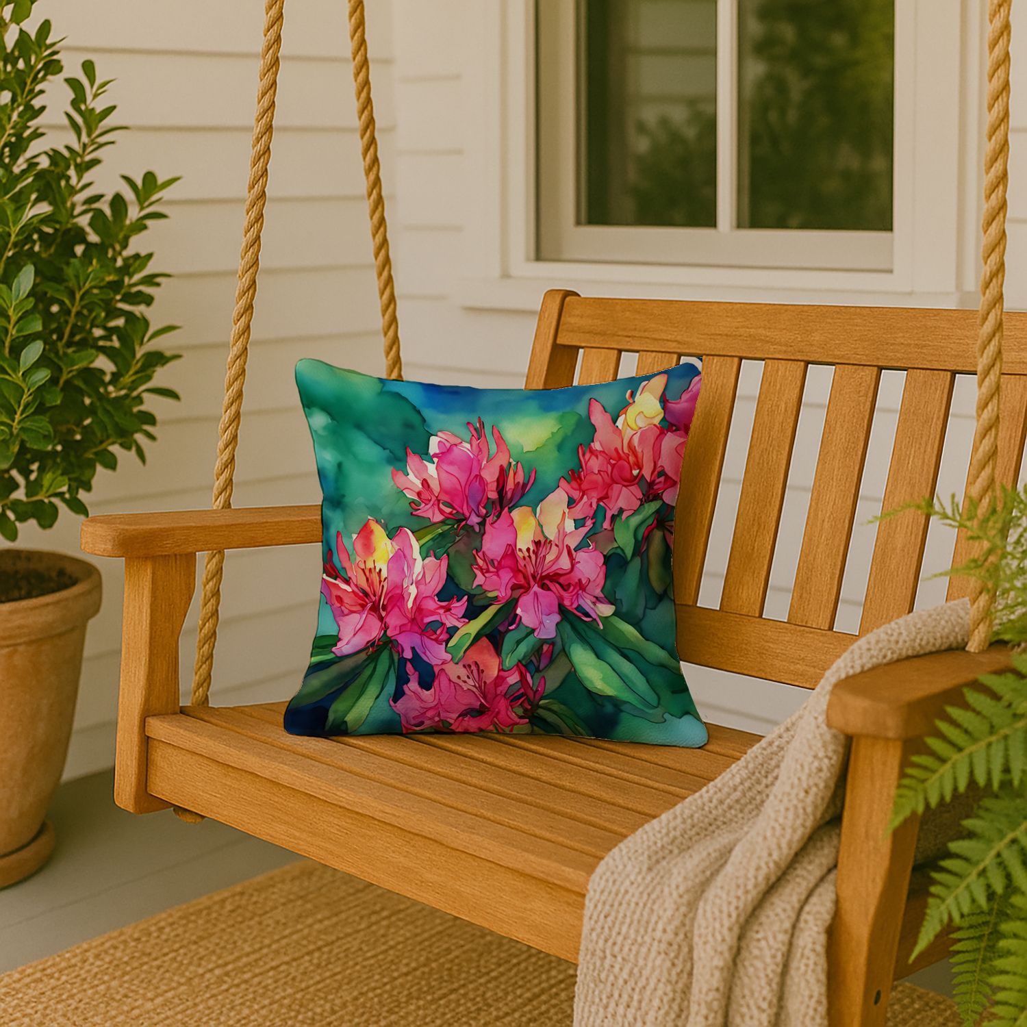 West Virginia Rhododendrons in Watercolor Throw Pillow Machine Washable, Indoor Outdoor Decorative Pillow for Couch, Bed or Patio, 18Hx18W