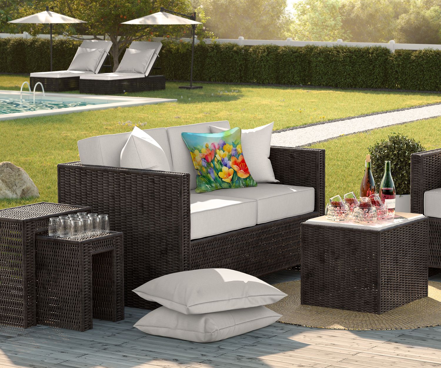 1.High-Quality Material: Our 18x18 Fabric Decorative Pillow from Caroline's Treasures features a durable 100% polyester fabric sham, designed to be water-resistant and withstand various weather conditions, perfect for outdoor patio furniture or indoor use.