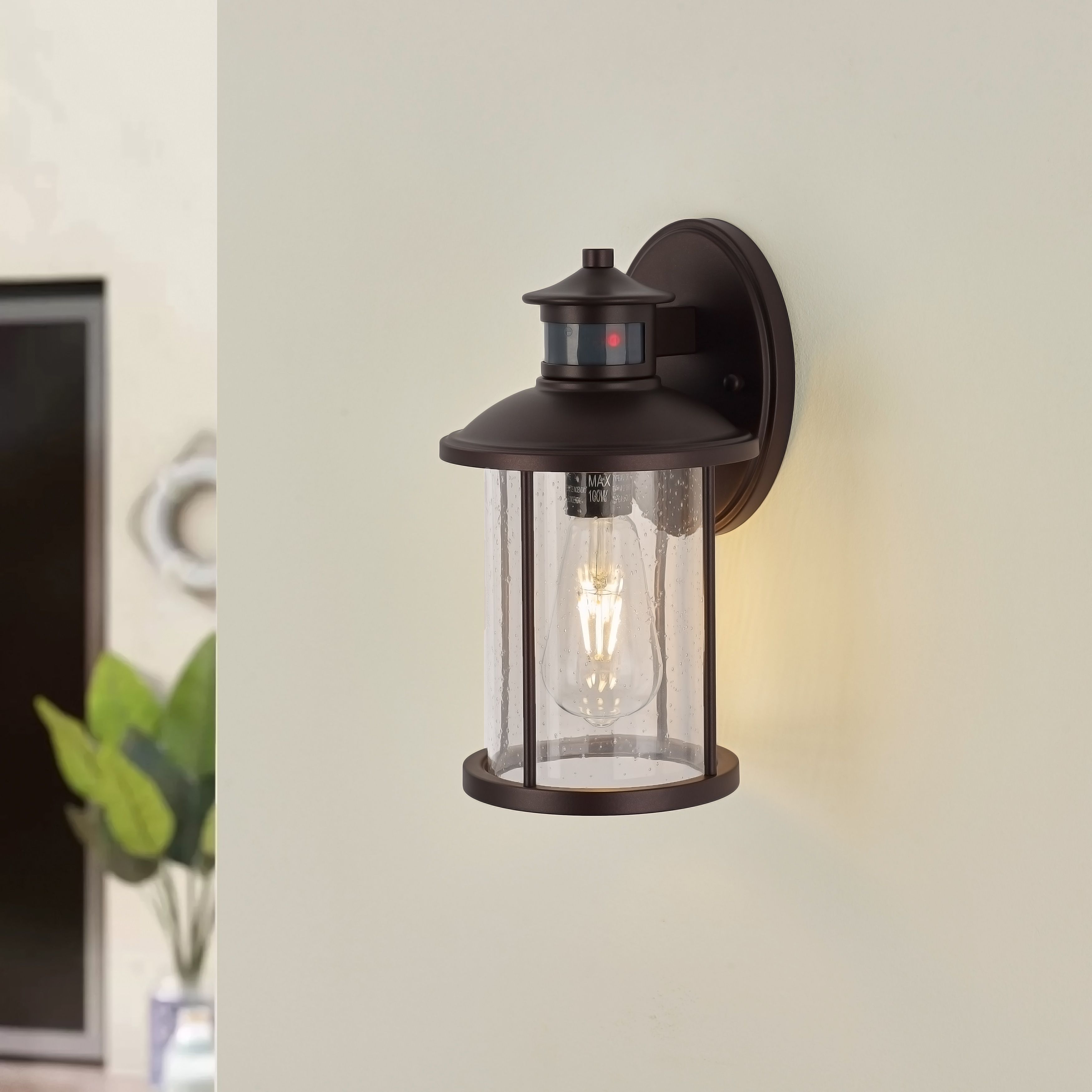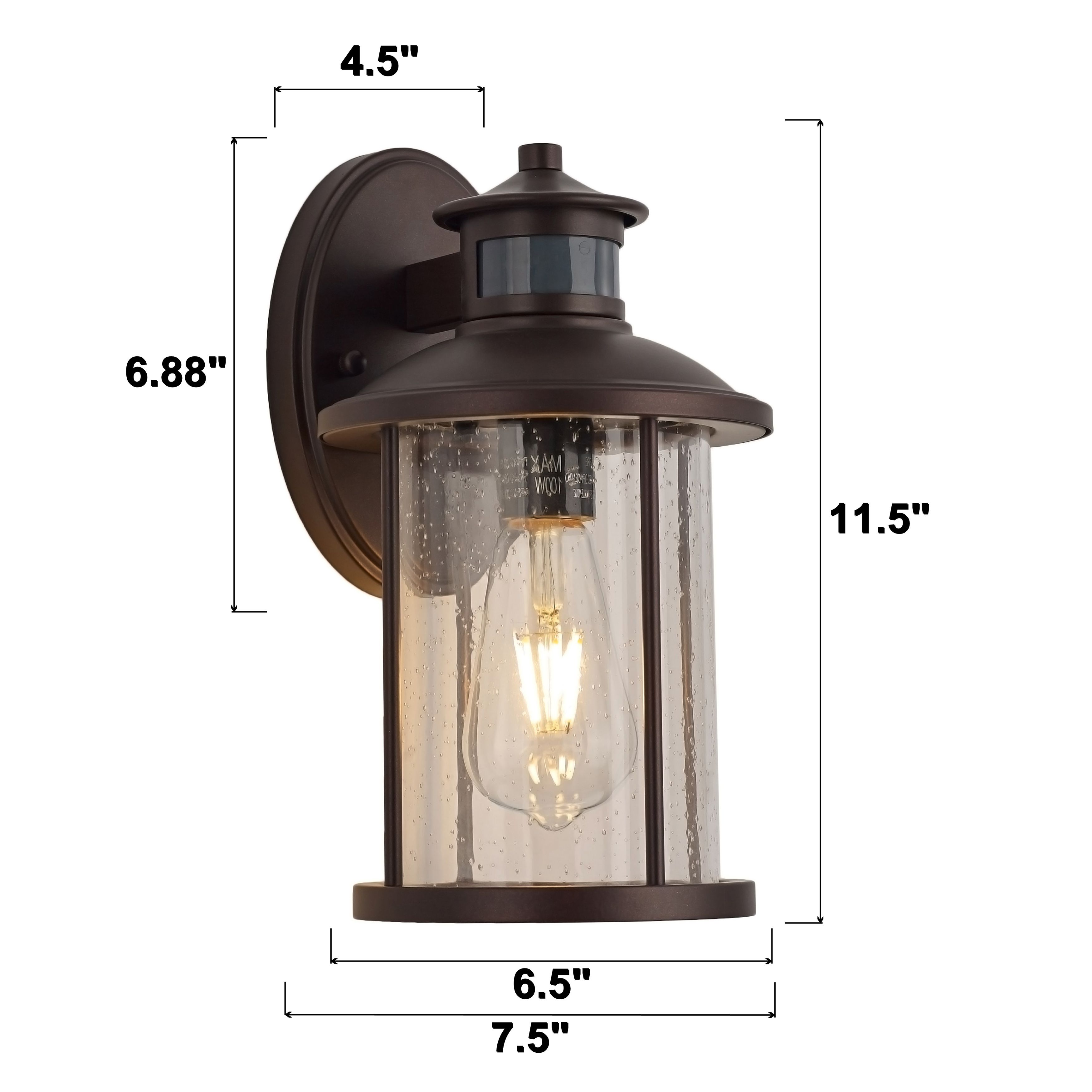 2 Pack motion sensor outdoor wall light in ORB finish with clear seedy glass, 6.5*7.25*11.5"