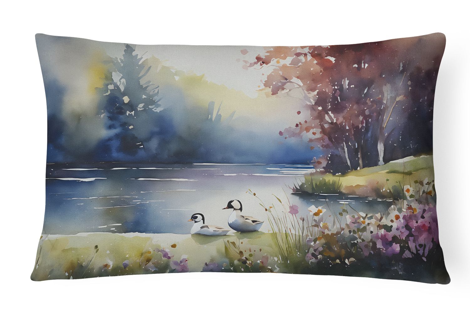 Watercolor Birds Throw Pillow Throw Pillow for Indoor Couch Bed Outdoor Patio Washable, Bufflehead 3193,12Hx16W