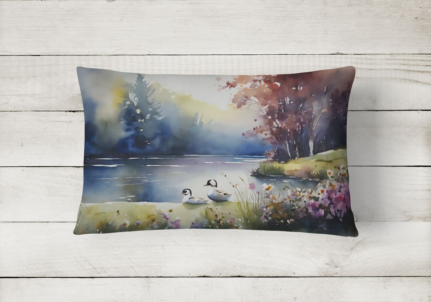 Throw Pillow featuring breed specific Bufflehead artwork. Embrace the fusion of comfort and style with Caroline's Treasures Fabric Decorative Pillow. This 12x16 inch outdoor pillow is designed to complement your patio furniture, adding a splash of color and artistry to your outdoor setting. Constructed with a 100% Polyester Fabric pillow sham filled with a plush pillow form, this cushion is as comfortable as it is durable. Our outdoor pillow utilizes a novel fabric, meticulously woven for enhanced water resistance. This soft canvas material is equally suited for your indoor couch as well as outdoor settings such as the patio, porch, or veranda. To ensure enduring vibrance, we employ colorfast dyes resistant to fading even when subjected to weather elements. The making of this pillow involves the delicate sewing together of three fabric pieces to create a sham, into which a polyester insert is carefully placed. The result is an overstuffed pillow that tenaciously holds its shape. With both the sham and the pillow insert crafted in the United States, these handmade pillows are a testament to superior local craftsmanship. Note that as these pillows are handmade, sizes may slightly vary, enhancing their unique appeal. Enjoy comfort in style with Caroline's Treasures Fabric Decorative Pillow.
