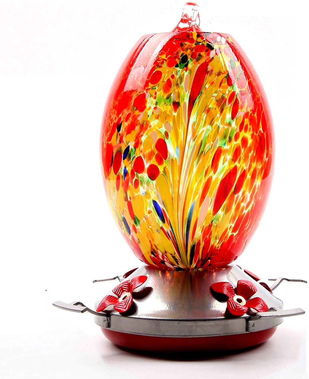 Its attractive colored blown-glass design along with its eye-catching design is sure to make birds flock into your backyard.