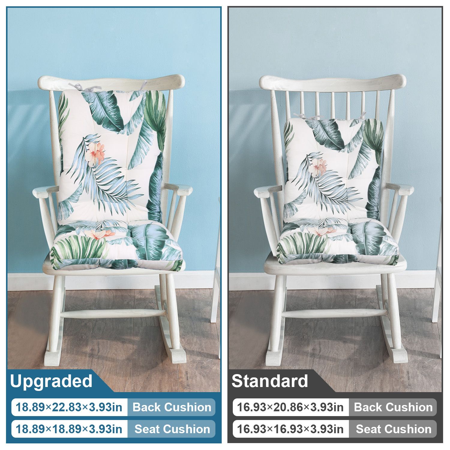 *Proper Size*:Upgraded rocking chair cushions with larger size provide you enhanced level of comfort,the back cushion size is 22.83x18.89x3.54inch,and the seat cushion size is 18.89x18.89x3.54inch. Easily match most of chairs,and please measure carefully before purchasing.