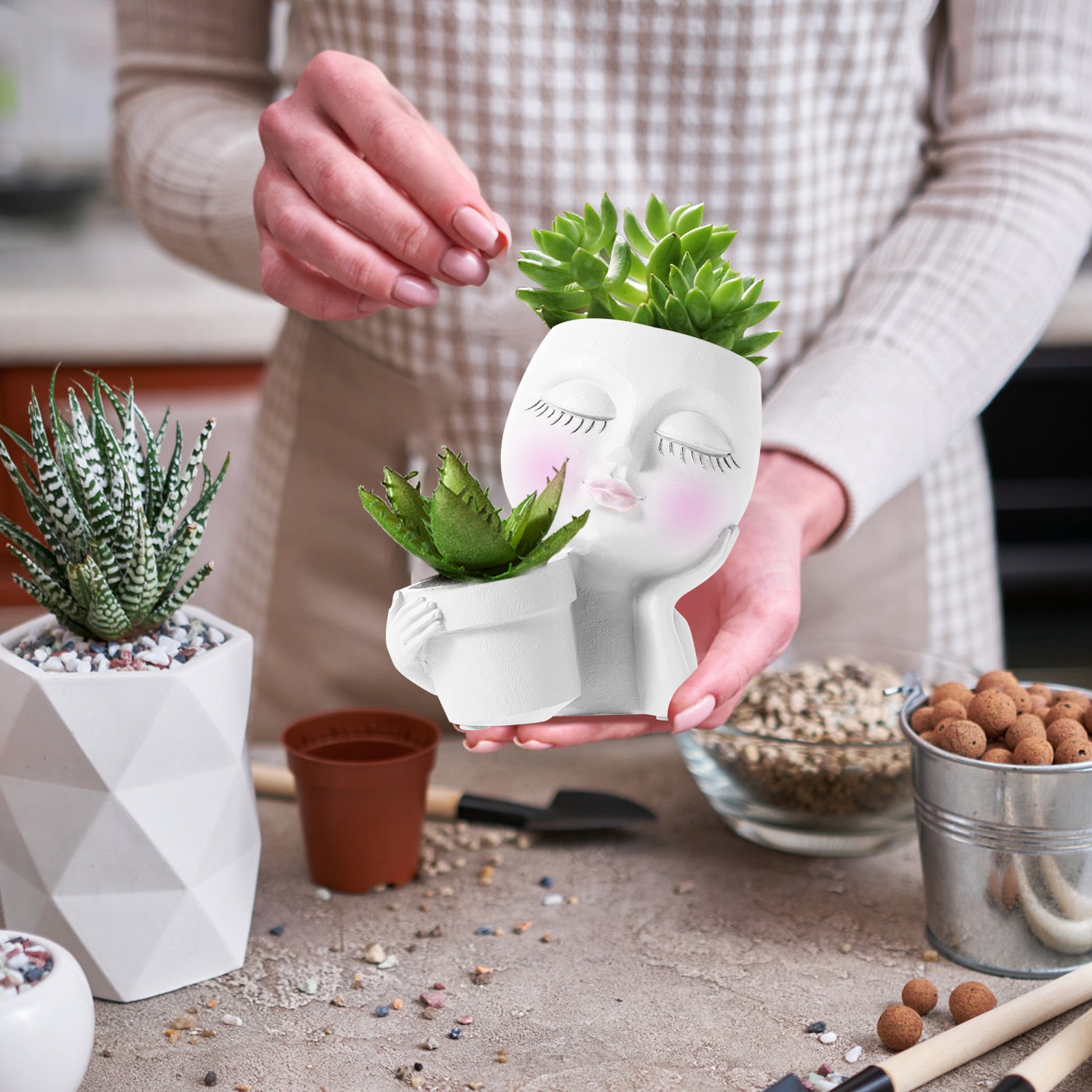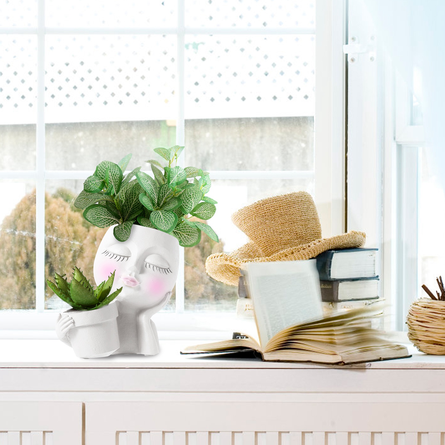 Home > Girl Face Planter Pot Dual Opening Flower Pot With Drainage Hole Lady Head Resin Plant Pot For Succulent Cactus Indoor Outdoor