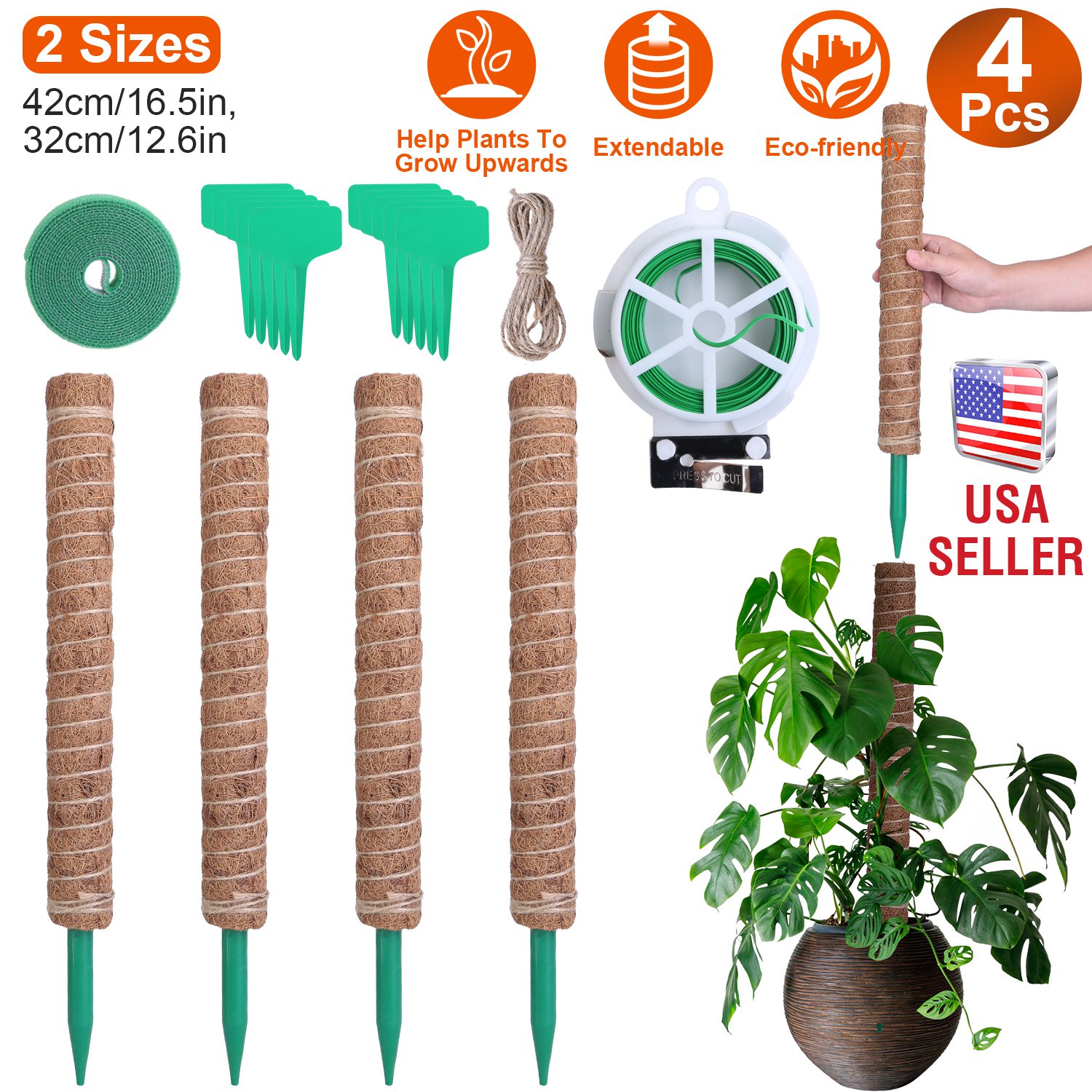 Home > 4Pcs Coco Coir Extendable Moss Pole for Climbing Plants Plant Support with 10 Labels 6.6Feet Jute Rope 6.6 Feet Fasten Strap 65.6 Feet Twist Tie Indoo
