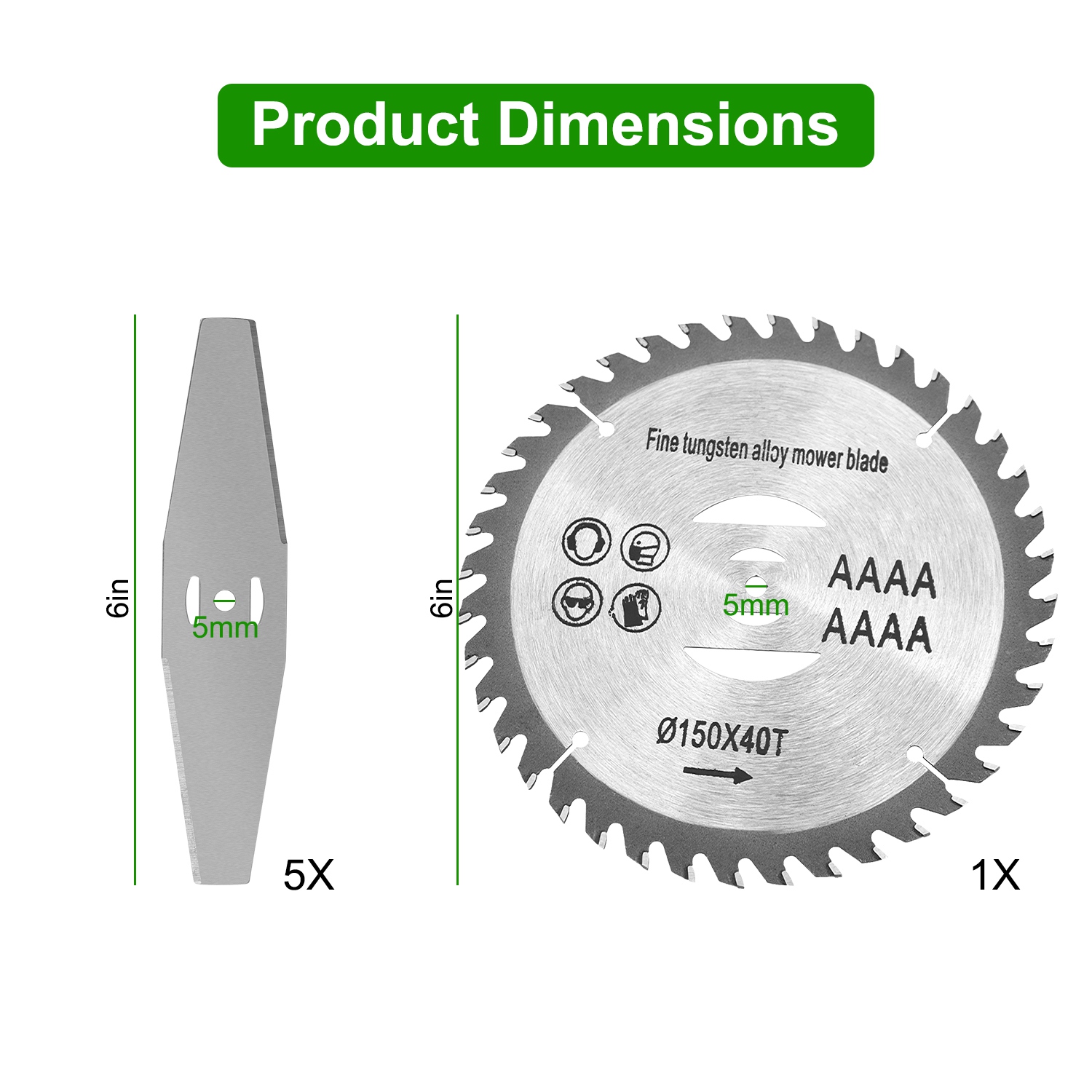 Home > 6Pcs High Carbon Steel Alloy Weed Cutter Attachments 5Pcs Metal Blades 1Pc Circular Saw Blade 6in Suitable for Weed Trimming Bush Pruning Tree Cutting