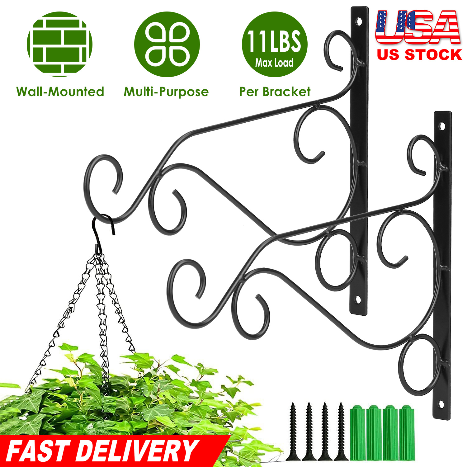 2Pcs Iron Plant Hanging Bracket Plant Hanger Wall Hooks For Bird Feeder Lanterns Wind Chimes