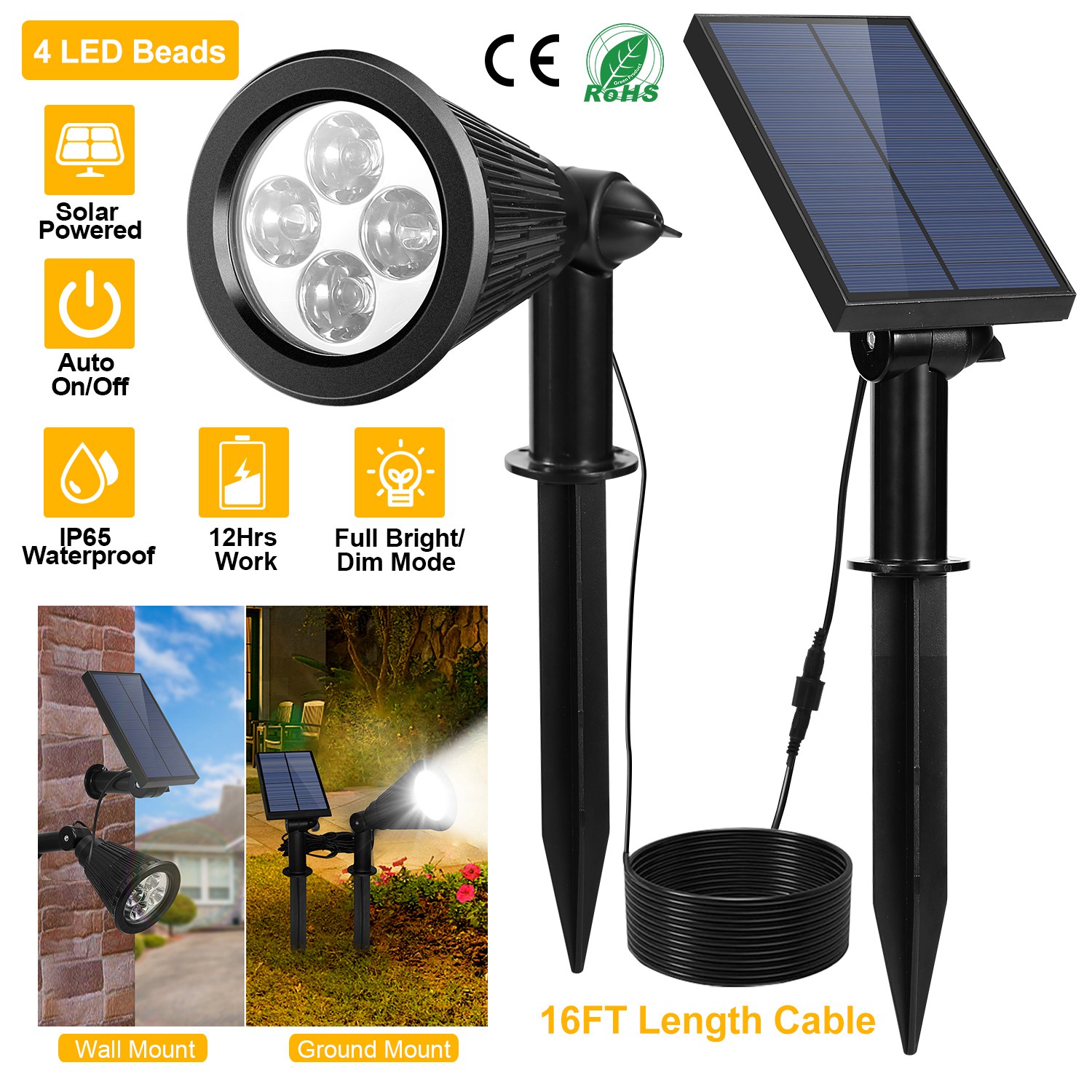 Solar Powered Spotlight Outdoor Dusk To Dawn Light Wall Path Lawn Garden Lamp Waterproof
