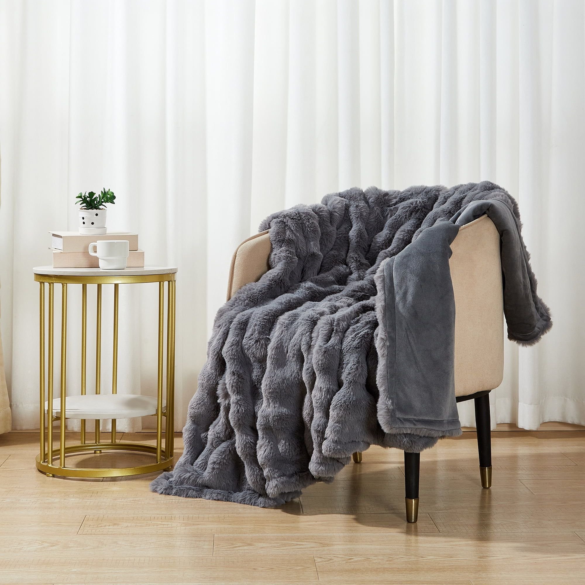 Grey Bubble Faux Fur Ultra Soft Luxury Oversize Throw Blanket 50" x 72", Grey Flannel