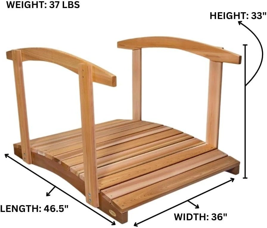 Handcrafted with Western Red Cedar, our 4-ft Garden Bridge and Side Rails combines functionality with charm; the perfect addition to any garden or space needing a crossing platform. The included decorative handrails add architectural presence, giving this model a more substantial, finished look.