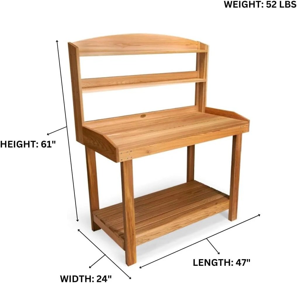 Handcrafted with Western Red Cedar, our Potting Bench was designed with the home gardener in mind. It provides the perfect workspace for filling pots and transplanting flats. The side and back lip keeps soil on the table, and off your deck. More than just a potting station, the PB48 also works beautifully as an outdoor prep table, grilling side station, or garden display shelf.