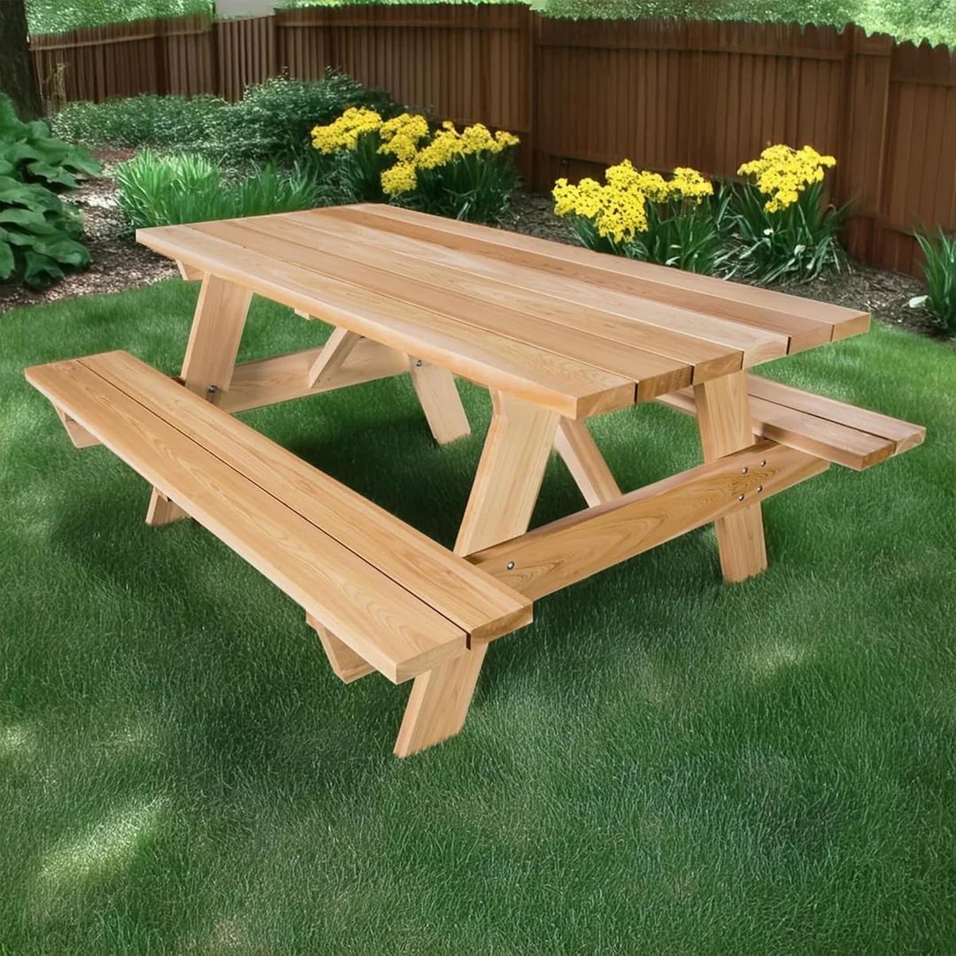 All Things Cedar 6-ft Classic Wood Picnic Table features a traditional park-side design, with seating for 6 adults.
