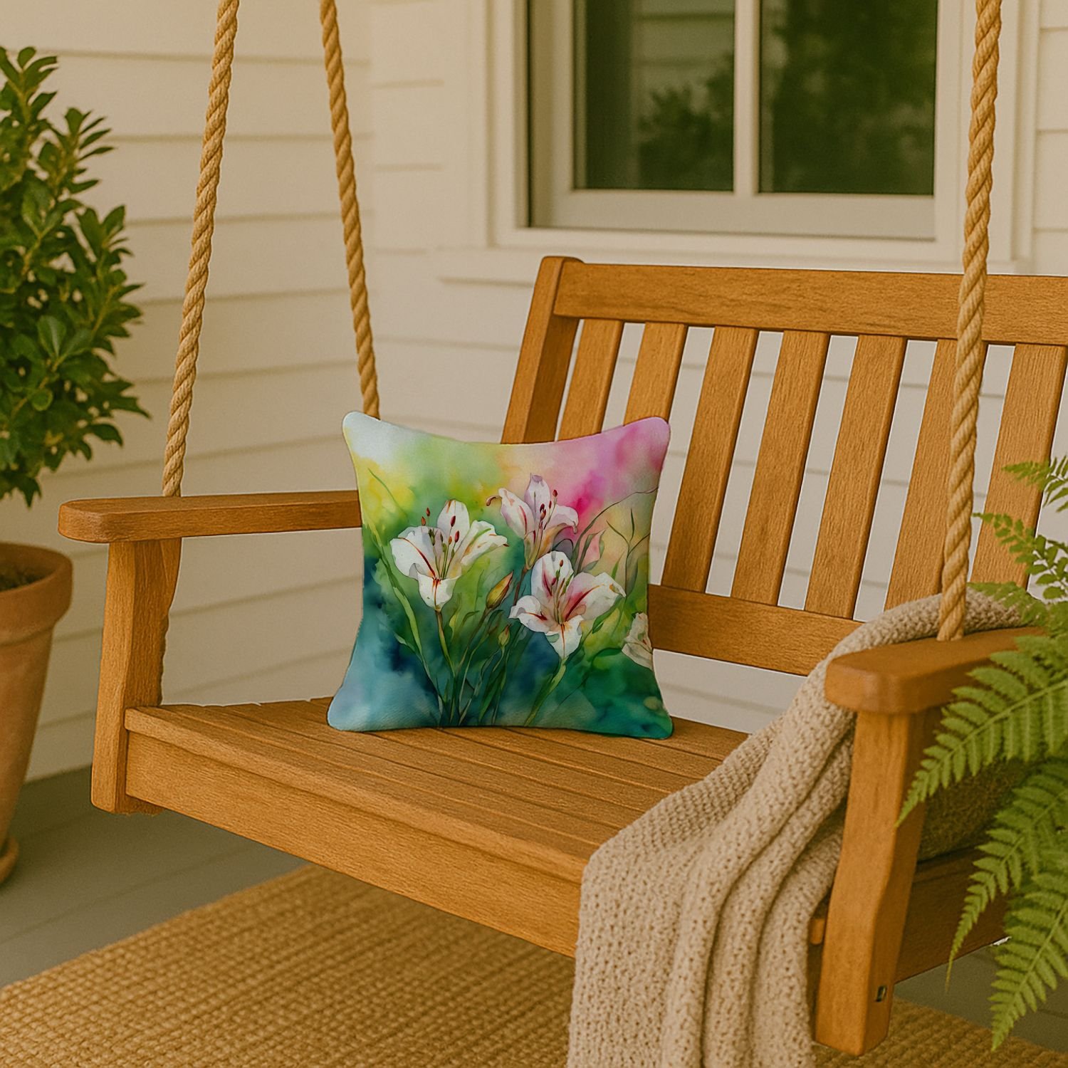 Home > Utah Sego Lilies in Watercolor Throw Pillow Machine Washable, Indoor Outdoor Decorative Pillow for Couch, Bed or Patio, 14Hx14W